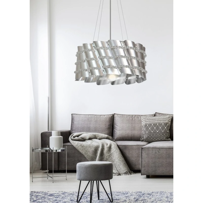 Lampa wisząca srebrna z ozdobnymi koralikami na żarówkę E27