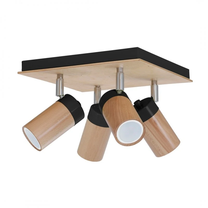 Spot sufitowy poczwórny 4xGU10 czarny+drewno BARON MLP9016 EKO-LIGHT