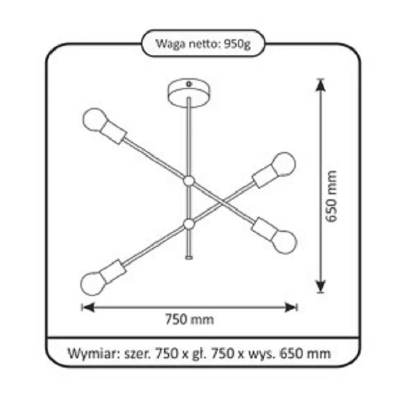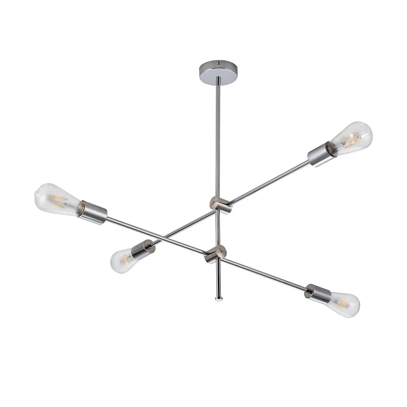 Elegancka lampa sufitowa Mora Chrome marki Sanico to nowoczesne rozwiązanie, które znajdzie zastosowanie w każdym pomieszczeniu. Produkt sprzedawany jest bez źródła światła w zestawie, dlatego samodzielnie dopasujesz je do własnych potrzeb. Lampa wisząca współpracuje z czterema żarówkami z tradycyjnym trzonkiem E27 o maksymalnej mocy 20W led (4x20W)- brak w zestawie. Brak kloszy sprawia, że możesz ozdobić lampę stosując w niej dekoracyjne żarówki led z filamentami. Wymiary lampy to: 750 x max 650 mm. Produkt przeznaczony jest do użytku wewnętrznego, a jego stopień odporności to IP20. Lampa jest w kolorze chromu i dostępna jest również w złotej wersji.