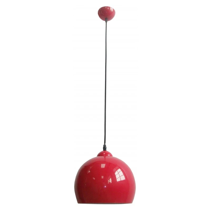Nowoczesna oprawa STUDENT z metalowym półkulistym kloszem to stylowe oświetlenie idelane do modnej kuchni, baru czy pubu. Intensywna czerwona kolorystyks sprawia, iż czerwona lampa sufitowa jest idealna do pomieszczeń młodzieżowych np. do pokoju nastolatka. Klosz lampy i podsufitka są wykonane z czerwonego trwałego metalu.Wnętrze klosza jest białe. Do wiszącej lampy kuli pasują żarówki z gwintem E27 ( brak w zestawie). Średnica lampy to 25 cm, wysokość klosza to 18,5 cm, a maksymalna długość zawieszenia to 100cm. Lampa występuje również w innych intensywnych kolorach np. różowym, zielonym i niebieskim.