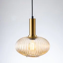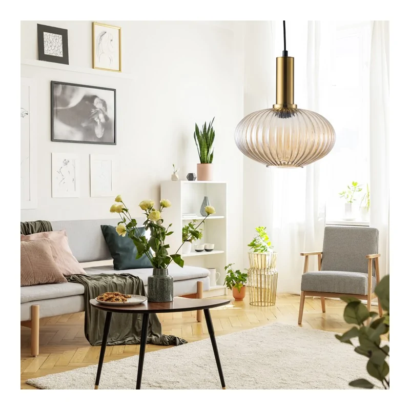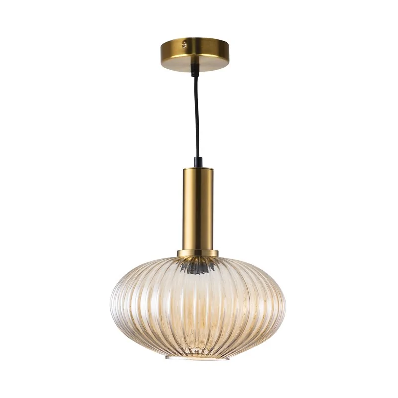 Ozdobna wisząca lampa sufitowa serii Il Mio NORFOLK marki POLUX to stylowe oświetlenie, które będzie pięknym elementem wystroju modnego wnętrza. Bursztynow klosz i złote dodatki świetnie spiszą się w nowoczesnym salonie, sypialni, a także jako oświetlenie do przedpokoju czy jadalni. Lampa sufitowa przeznaczona jest do współpracy z żarówkami z tradycyjnym trzonkiem E27 o maksymalnej mocy led do 20W- brak w zestawie. Wysoka jakość wykonania gwarantuje trwałość przez lata. Wymiary produktu to 245 x max 1000 mm. Produkt występuje również w innych wariantach kolorystycznych.