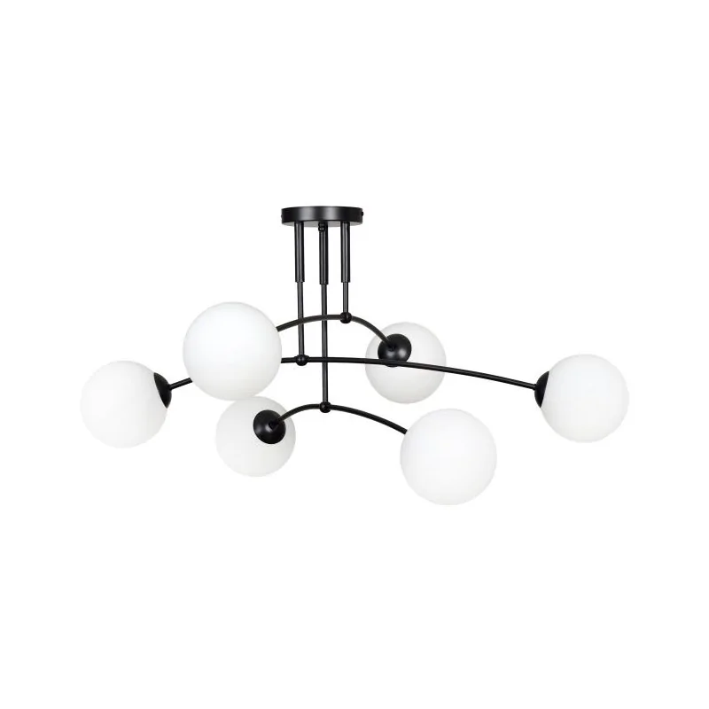 Lampa wisząca MONZA marki ORNO, wyprodukowana w Polsce ma prostą, minimalistyczną formę, która odpowiednia będzie do nowoczesnych wnętrz, również tych utrzymanych w bardzo popularnym stylu skandynawskim. Korpus wykonany jest ze stali lakierowanej na kolor czarny, natomiast kuliste klosze zrobione są z mlecznego, białego szkła. Oprawa przystosowana jest na 6 żarówki z gwintem E14, o maksymalnej mocy 40W każda (brak w zestawie). Zastosowanie wymiennego źródła światła pozwala każdemu użytkownikowi na indywidualny dobór rodzaju żarówki i na dostosowanie jej kształtu oraz barwy światła do własnych preferencji. Oświetlenie wiszące mierzy 70cm szerokości i 40cm wysokości. w serii MOZA dostępne są 4 modele lamp.