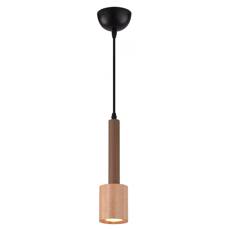 Lampa wisząca w kolorze jasnej kawy i drewna z miejscem na żarówkę GU10
