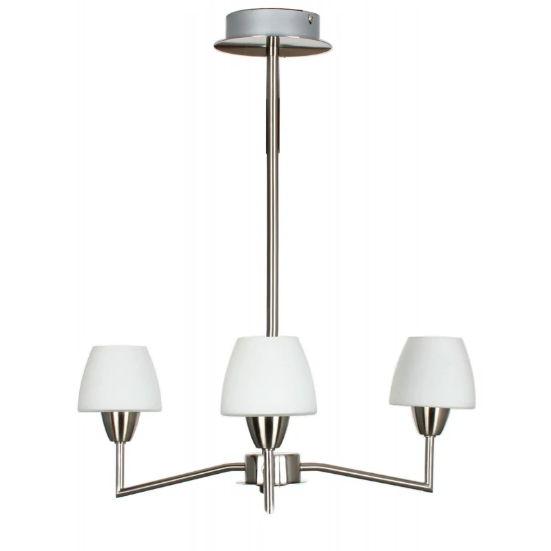 Oświetlenie wiszące TOGO 33-10639, klasyczne wykonanie połączone jest z nowoczesną a jednocześnie uniwersalną kolorystyką biało-satynową. Podstawa wykonana została ze stali a klosze umieszczone na powyginanych ramionkach są ze szkła. Lampa marki Candellux przystosowana jest na trzy żarówki o gwincie G9 do maksymalnej mocy 40W. Funkcjonalnym rozwiązaniem jest możliwość regulacja wysokości poprzez ruchome zawiesie, które możemy wysunąć do max 70cm oraz minimalna wysokość wynosi 50cm. Takie rozwiązanie pozwala na zamontowanie lampy w dowolnym pomieszczeniu. W serii TOGO znajdziemy również lampę pięcioramienną oraz kinkiet. Produkt objęty jest gwarancją producenta.