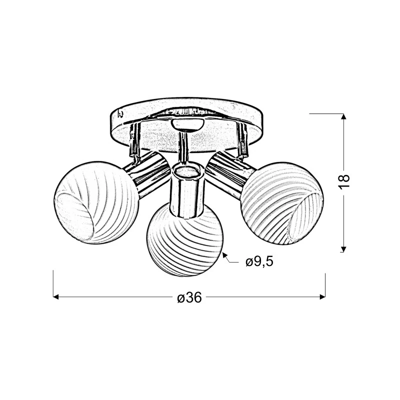 Potrójna lampa sufitowa TURNO 98-10940 marki Candellux, łączy ze sobą klasyczną konstrukcję z nowoczesną kolorystyką chromu i bieli. Podstawa wykonana z metalu oraz szklane abażury ozdobione delikatnymi paskami przyjemnie rozpraszają światło w pomieszczeniu. Oświetlenie jest łatwe w utrzymaniu czystości i dodatkowo możemy w dowolnym kierunku ustawić strumień światła, a to za sprawą ruchomych kloszy. Do plafony polecamy wybrać energooszczędne żarówki o gwincie E14 do maksymalnej mocy 40W. Wymiary wynoszą: wysokość - 18cm oraz szerokość - 36cm. W serii TURNO znajdziemy również kinkiet oraz lampę ścienno-sufitową. Produkt objęty jest gwarancją producenta.