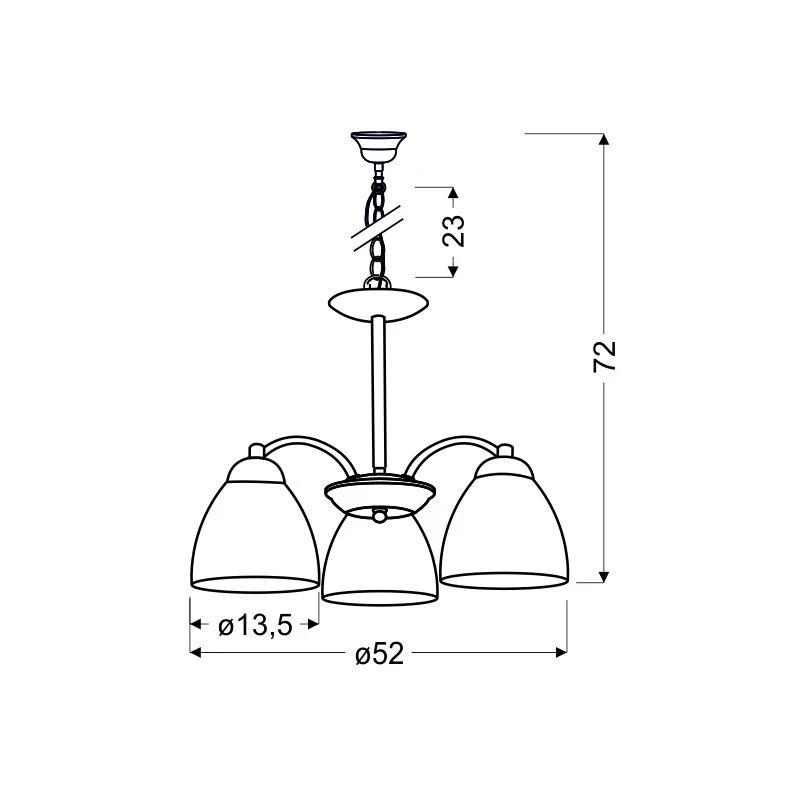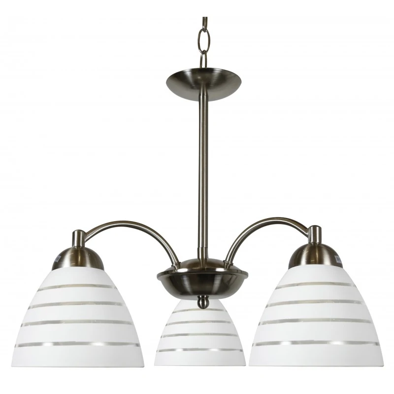 Oświetlenie wiszące ULI 33-66152 marki Candellux, z pewnością dopasujemy do pomieszczeń w różnych stylach. Lampa jest zawieszona na łańcuchu, który umożliwia regulację wysokości. Klosze wykonane ze szkła w kolorze białym, udekorowane zostały paskami odsłaniającymi matowe, niemalowane szkło, a całość znajduje się na stalowej podstawie. Klasyczny styl lampy przesądza o jej uniwersalności. Zwis przystosowany jest na 3 żarówki o gwincie E27 do max mocy 60W. Źródło światła nie jest dołączane do zestawu. W serii ULI znajduje się również lampa pięcioramienna oraz kinkiet. Produkt objęty jest gwarancją producenta.