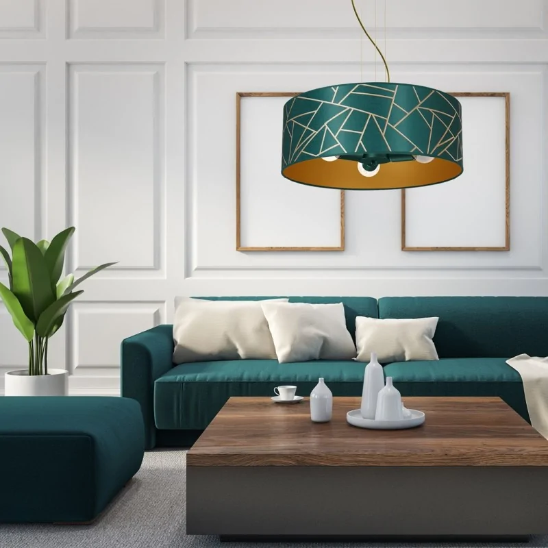Elegancka lampa wisząca ZIGGY MLP7580 polskiego producenta EKO-LIGHT, stworzona została z myślą o dużych, przestrzennych wnętrzach. Butelkowa zieleń jest hitem kolorystycznym już od kilku sezonów, dodatkowo złote elementy podkreślają unikatowość i ponadczasowość oprawy. Regulowana wysokość od 40cm do 90cm, pozwala na lepsze dopasowanie do otoczenia, natomiast średnica klosza wynosi 50cm. Prezentowane oświetlenie przystosowane jest na 3 żarówki o gwincie E27 do max mocy 60W - brak w zestawie. Polecamy zapoznać się z całą serią ZIGGY.