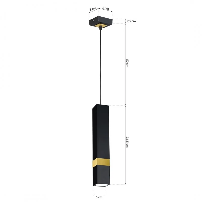 Minimalistyczna seria lampa Vidar charakteryzuje prostym oraz nowoczesnym wykonaniem. Klosze są w kształcie prostopadłościanu, a ich niewielki wymiar sprawia, że w każdym pomieszczeniu będą się dobrze prezentować. Czarny kolor spisze się w każdej aranżacji. Dodatkowo klosz lampy sufitowej Vidar ozdobiony został złotym paskiem. Produkt sprzedawany jest bez źródła światła w zestawie, dzięki czemu dopasujesz moc, barwę oraz natężenie światła żarówki led (GU10) do własnych potrzeb.