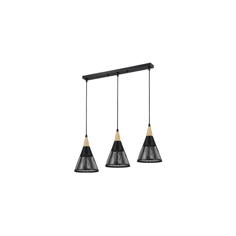 Wisząca lampa sufitowa potrójna czarna z dodatkiem drewna 3xE27 HIRA 0024 LVT