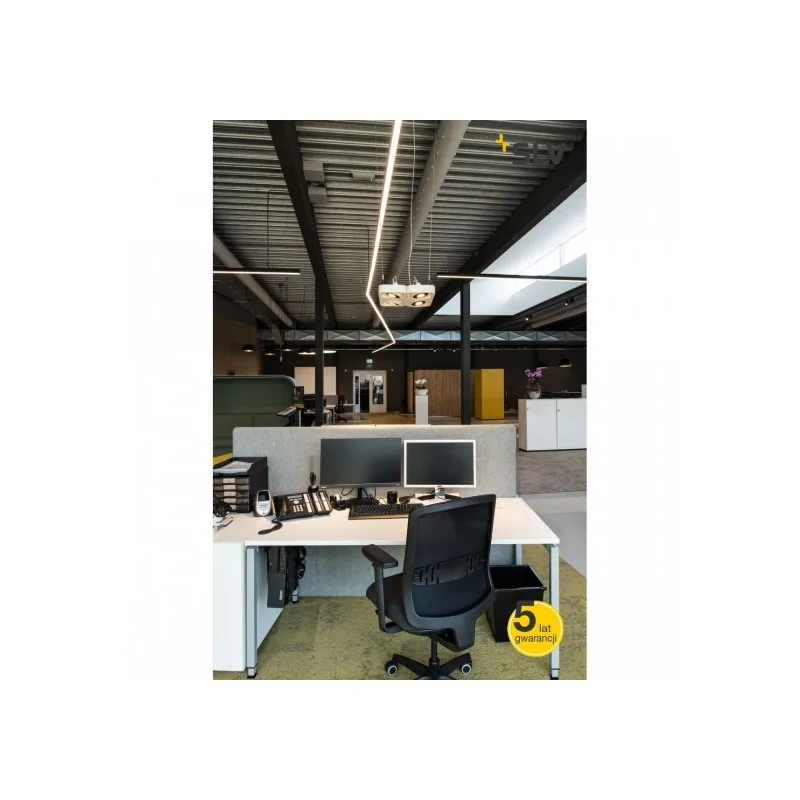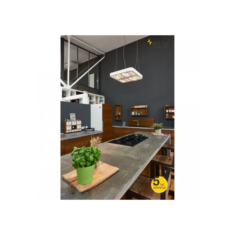 Wisząca lampa sufitowa z poczwórnym ruchomym źródłem światła to produkt marki SPOTLINE. Oświetlenie pozwala na kierowanie źródła światła w czterech różnych kierunkach jednocześnie. Lampa o 2-metrowej długości zawieszenia idealnie sprawdzi się jako oświetlenie nad stół, wyspę lub blat kuchenny. Wymienne źródło światła pozwala na samodzielny dobór barwy oraz mocy żarówki GU10 doskonale dopasowując je do miejsca przeznaczenia. Prezentowana lampa objęta jest 5-letnią gwarancją producenta.