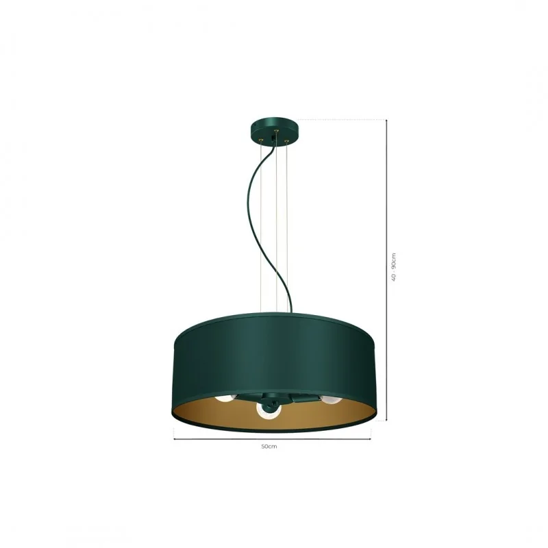 Oryginalna lampa wisząca VERDE MLP7879 marki EKO-LIGHT, w ciemnym zielonym kolorze nada się do dużych przestronnych wnętrz ale również tych o ograniczonym miejscu. Sprawia to regulowana wysokość od 40cm do 90cm, również klosz o średnicy 50cm z trzema źródłami światła oświetli znacznie większe pomieszczenie. Wykonana jest ze tkaninowego klosza oraz metalowej podsufitki. Do prezentowanego oświetlenia nalży dobrać 3 żarówki o trzonku E27 do max mocy 60W, można zamontować energooszczędne żarówki LED. Aby stworzyć nowoczesny klimat w stylu glamour możemy dobrać inne lampy z serii VERDE.