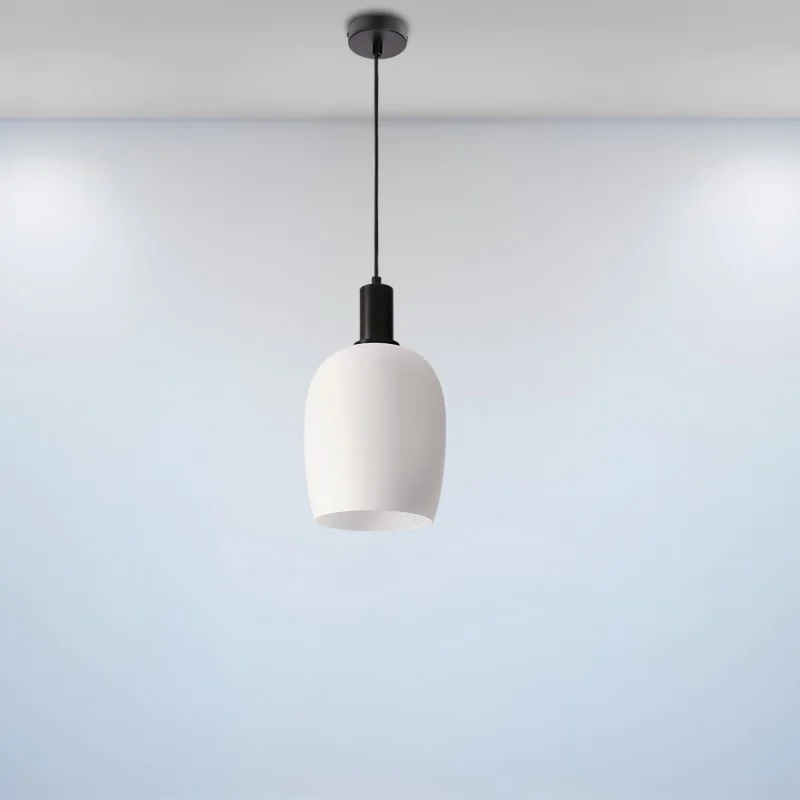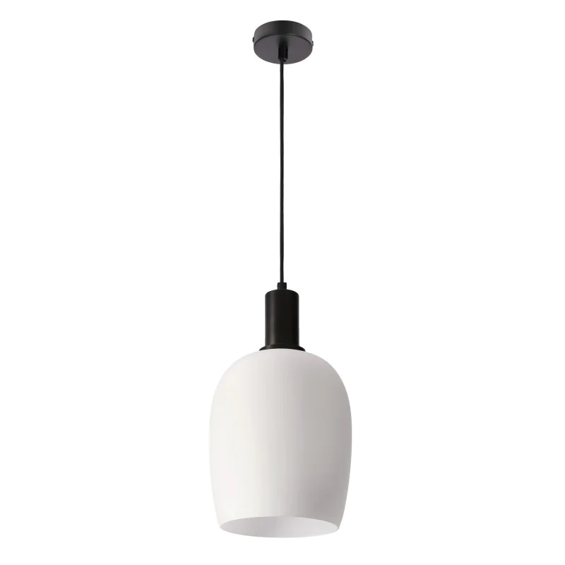 Nie zawiera głównego źródła światła Moc max (W): 40 Materiał: zawiesie stalowe, klosz szklany Kolor: biało czarny
