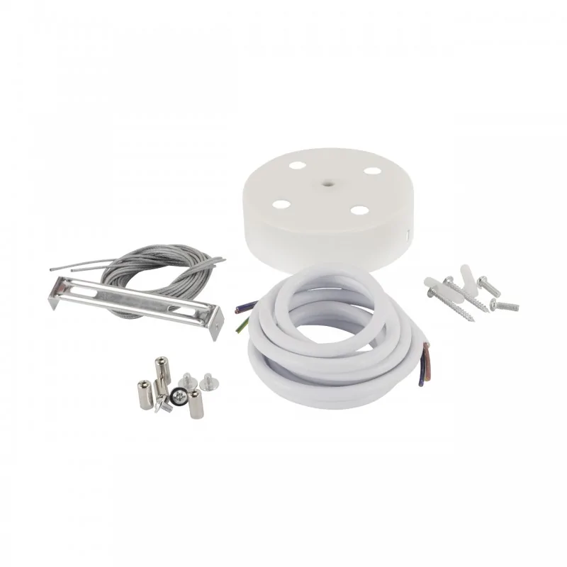 Zawiesie linkowe do opraw sufitowych marki IDEUS idealnie spisze się w miejscach, gdzie nie chcesz zamontować oprawy bezpośrednio do sufitu. W skład zestawu wchodzą 4 stalowe linki, przewód elektryczny, puszka maskująca, kołki montażowe, oraz akcesoria służące do zamocowania na linkach zwieszanego produktu. Wymiary zawiesia linkowego to: wysokość: 180cm, szerokość- 10cm. Produkt dostępny jest również w czarnej wersji.
