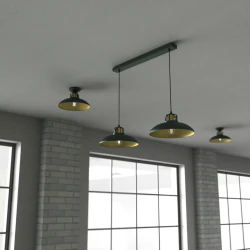 Oświetlenie wiszące FELIX MLP7710 jest propozycją od polskiej marki EKO-LIGHT, która z uwagi na charakterystyczne, otwarte klosze wizualnie nawiązują do oświetlenia w stylu industrialnym. Wykonana jest z metalu w kolorze modnej ciemnej butelkowej zieleni ze złotymi dodatkami, które nieco przełamują surowy wygląd. Lampa wisząca przystosowana jest na 2 żarówki o gwincie E27 do max mocy 60W, konstrukcja kloszy pozwala na zamontowanie dekoracyjnych żarówek, które podkreślą wyjątkowość oprawy. Szerokość lampy to 75cm, natomiast regulowana wysokość 50-90cm, pozwala na zamontowanie jej zarówno w wysokich jak i niskich wnętrzach. Polecamy zapoznać się z cała rozbudowaną serią FELIX.