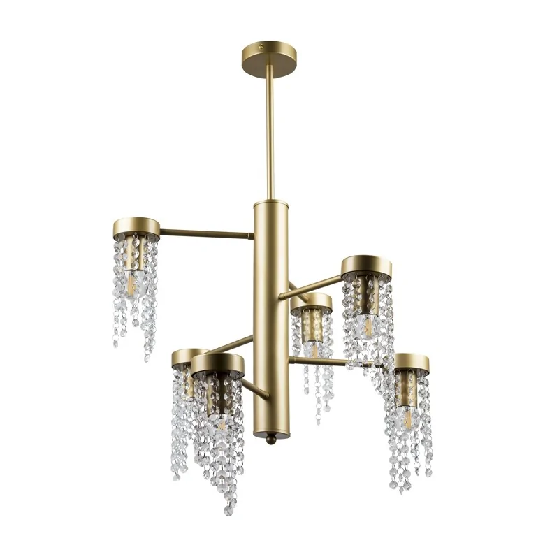 Złoty żyrandol ze zwisającymi krytształkami GEA 6xE27 316318 POLUX