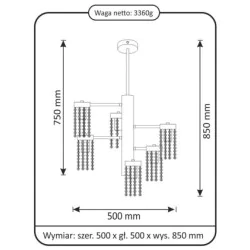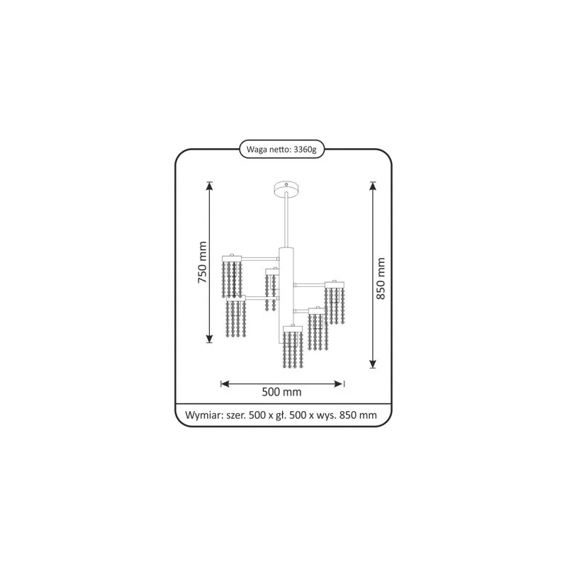 Lampa sufitowa GEA-6 to niebanalna i niedroga propozycja oświetleniowa ze zwisającymi kryształkami i 6 punktami świetlnymi. Podstawa lampa wykonana jest ze złotego metalu, a mieniące się kryształki z tworzywa sztucznego. GEA świetnie sprawdzi się w nowoczesnych przestrzeniach, gdzie będzie pełnić rolę stylowego dodatku. Oświetlenie sufitowe GEA przystosowane jest do 6 żarówek o gwincie E27 do maksymalnej mocy 20W led każda- brak w zestawie. Wymiary oprawy z kryształkami to 500x850mm. Lampa jest objęta 24-miesieczną gwarancją producenta. Seria GEA to rozbudowana kolekcja oświetleniowa, którą możemy dowolnie zestawiać tworząc unikatowe kompozycje oświetleniowe w domu czy mieszkaniu (dostępne rónież oprawy na 1,3 i 5 źródeł światła).