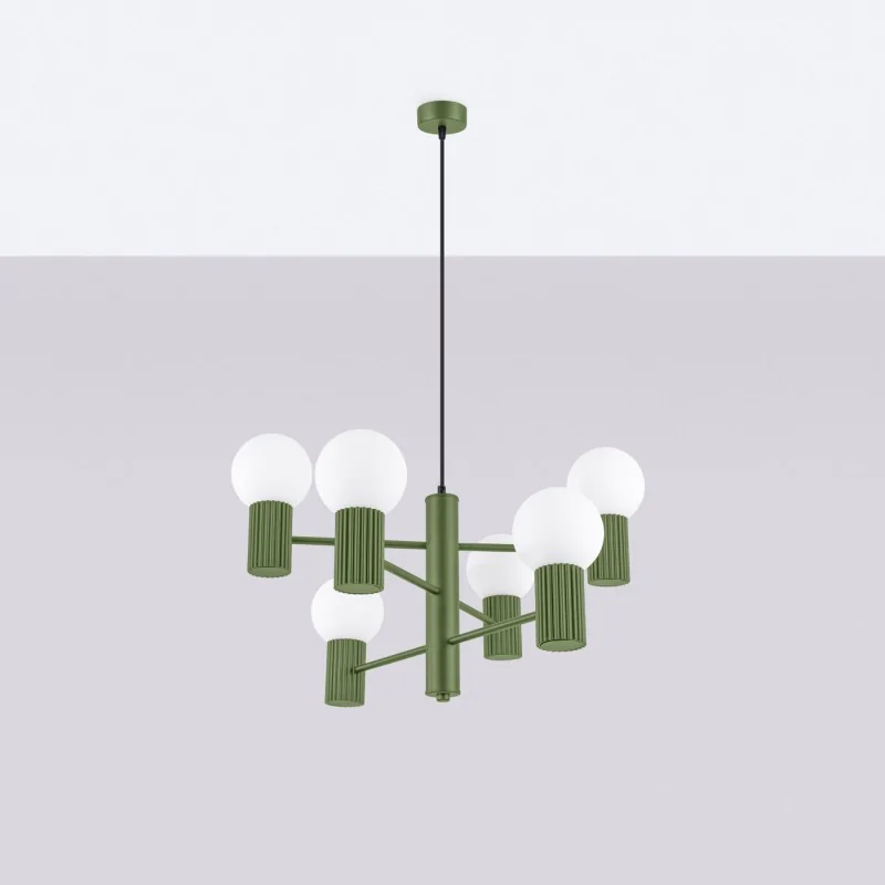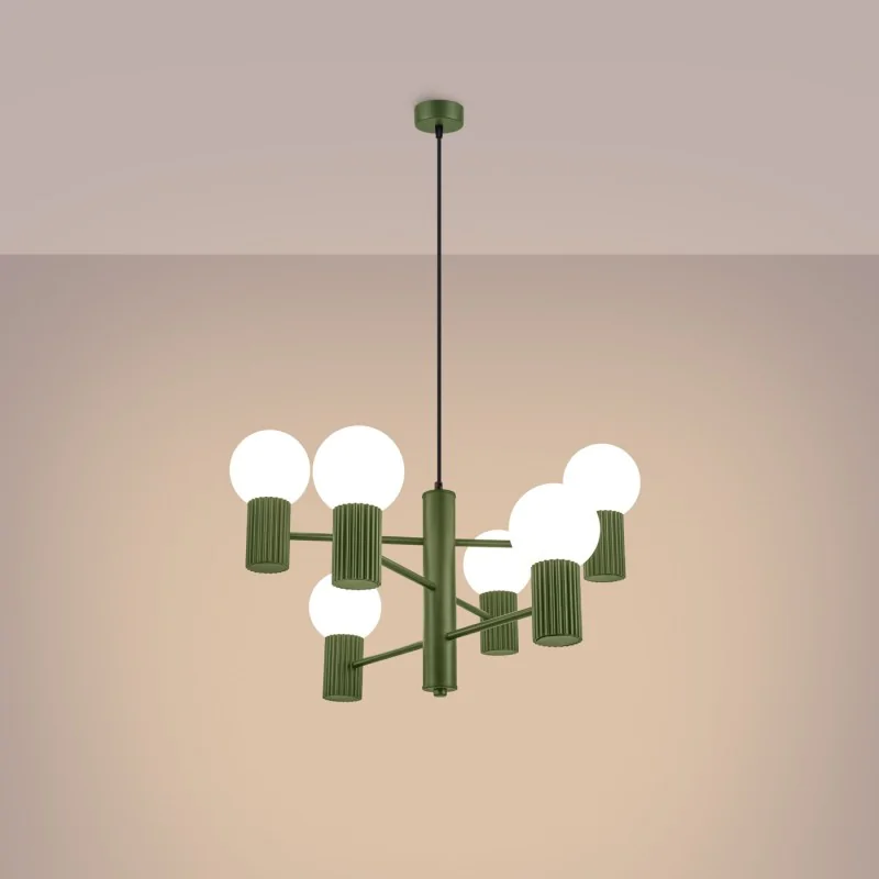 Żyrandol Lampa sufitowa duża kule HALO 6 zielony oliwkowy Sollux SL.1832