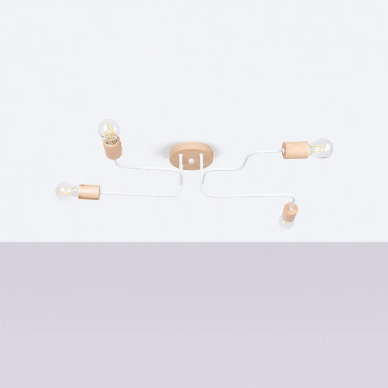 Żyrandol lampa sufitowa pająk poczwórna biała z drewnem TIMBO 4 SL.1665