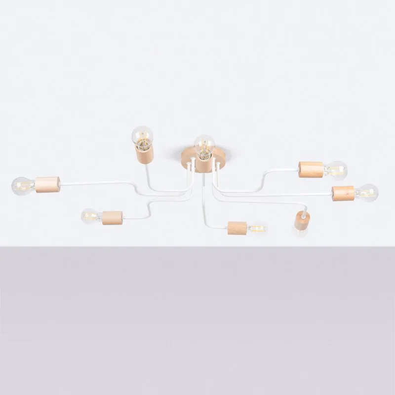 Żyrandol 8 ramion biało drewniany pająk skandynawskiTIMBO 8 Sollux SL.1667