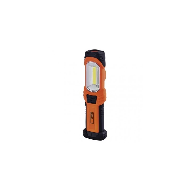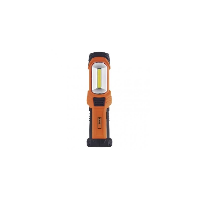 Latarka warsztatowa LED P4111 marki EMOS znajdzie zastosowanie w każdym gospodarstwie domowym, warsztacie oraz w innym miejscu, gdzie niezbędne jest oświetlenie większej powierzchni. Lampka led wyposażona została również w hak i magnes do zawieszenia. Produkt zasilany jest 3 bateriami AA- brak w zestawie. Warsztatowa latarka COB LED świeci strumieniem świetlnym równym 350 lumenów, a jej maksymalny zasięg to 120m. Wymiary latarki led to: 40 x 65 x 235mm. Lampka posiada również dodatkową diodę z przodu.