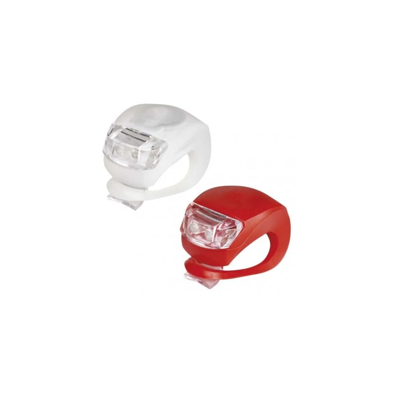 Funkcjonalne lampki rowerowe - komplet przód tył ułatwią widoczność i poruszanie sie na rowerowych ścieżkach. Lampki zasilane są bateriami CR2023. Ich maksymalny strumień świetlny to 10lm. Maksymalny zasięg tych światełek na rower to ok 13 metrów. Produkj jest wododoporny. Lampki posiadają 3 tryby świecenia- miga szybko,miga wolno oraz świeci stale.. Zarówno przednia, jak i tylna lampka zawierają po 2 diody led.
