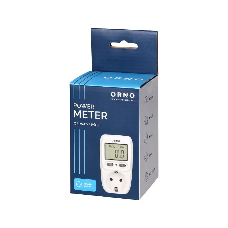 Watomierz firmy ORNO to idealne urządzenie do pomiaru zużycia prądu elektrycznego a przy tym obliczenia kosztów podłączonego urządzenia. Często nie mamy pojęcia jakie urządzenia gospodarstwa domowego pobierają najwięcej energii a tym samym generują największe rachunki. Rozwiązaniem tego problemu jest zakup watomierza który jest w stanie sprawdzić stan zużycia energii zarówno w domu czy też w firmie. Oferowany przez nas watomierz dzięki dużemu wyświetlaczowi LCD daje nam możliwość łatwego odczytania wyniku pomiaru, a jego obsługa jest dziecinnie prosta przez co jest również idealnym urządzeniem dla osób starszych. Watomierz z gniazdem typu F - Schuko.