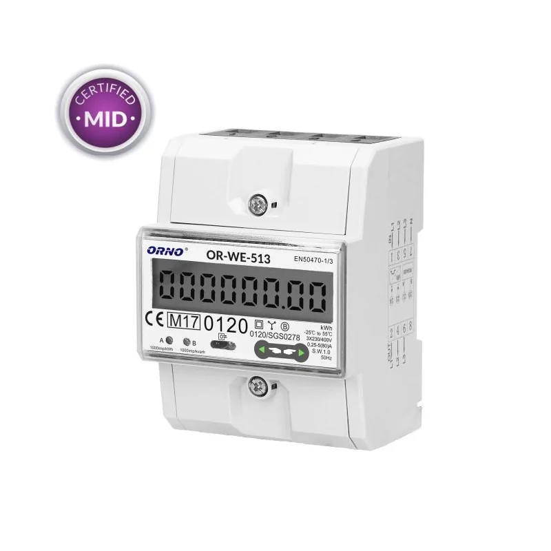 OR-WE-513 Licznik energii trójfazowy certyfikowany MID 80A 4.5 moduły ORNO