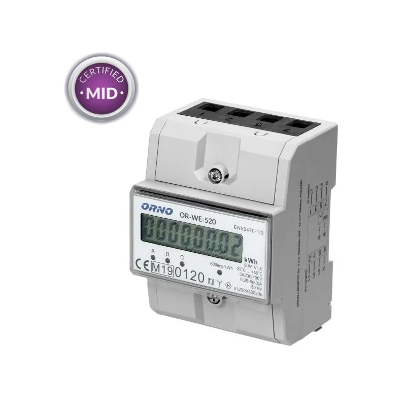 OR-WE-520 Licznik energii trójfazowy certyfikowany MID 80A 3 moduły ORNO