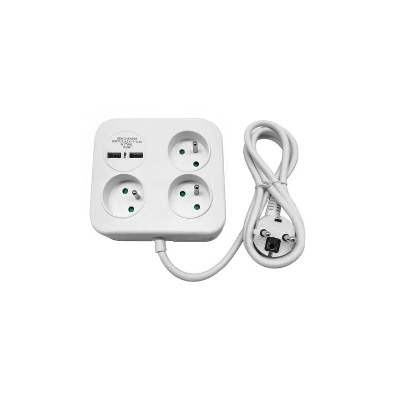 Kwadratowa listwa zasilająca z trzema gniazdami i dwoma wejściami USB