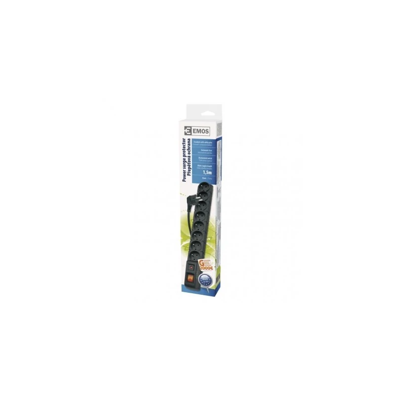 Czarna listwa przeciwprzepięciowa 8 gniazd 1,5m P53899 EMOS