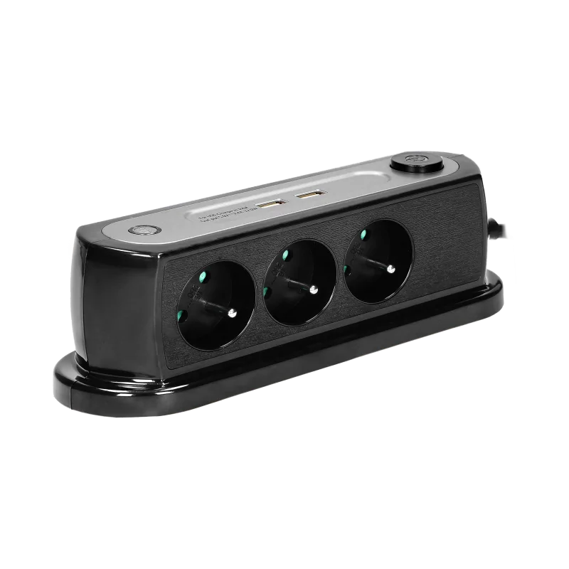 Listwa zasilająca marki ORNO w kolorze czarnym to świetne i praktyczne rozwiązanie. Przedłużacz nabiurkowy wyposażony został w 3 gniazda sieciowe z uziemieniem oraz dwa wejścia USB A. Dodatkowo produkt posiada ochronnik przeciwprzepięciowy typu 3. Przedłużacz posiada czarną obudowę wykonaną z wysokiej jakości materiałów z dbałością o każdy detal. Listwa zasilająca wyposażona została również w wyłącznik główny oraz kabel o długości 1,4m.