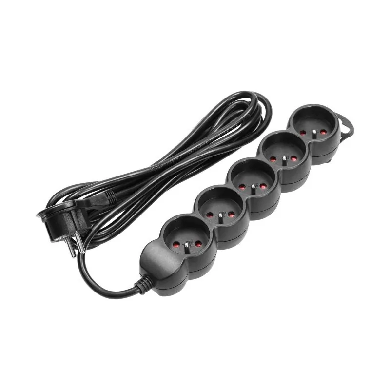 Czarny potrójny przedłużacz z uziemieniem 5m SILO 6613 LVT