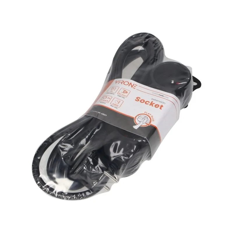 Przedłużacz 3-krotny firmy ORNO to listwa do zasilania naraz trzech urządzeń o maksymalnym łącznym obciążeniu 3680W. Przekrój kabla o długości 3 metrów to 3x1,5mm (H05VV-F). Czarny kolor obudowy przedłużacza dobrze będzie prezentował się w każdym miejscu. Gniazda wyposażone zostały w uziemienie oraz przesłony torów prądowych. 3-metrowy przedłużacz posiada płaską wtyczkę, dzięki czemu możesz łatwo podłączyć listwę do gniazda za meblami. Dodatkowo produkt posiada uchwyt do zawieszenia na ścianie.