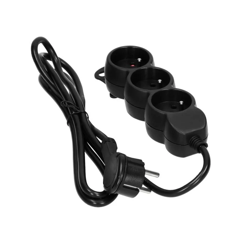 Czarny przedłużacz potrójny 3m 3x1,5 z płaską wtyczką ES-4/B/3 ORNO