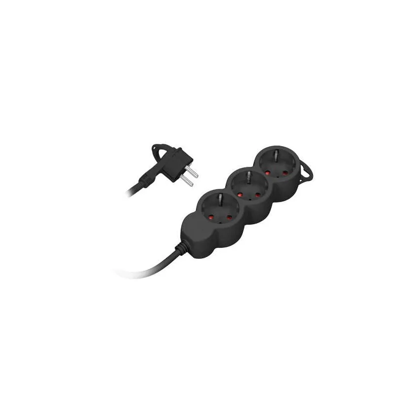 Czarny potrójny przedłużacz domowy w wersji Schuko