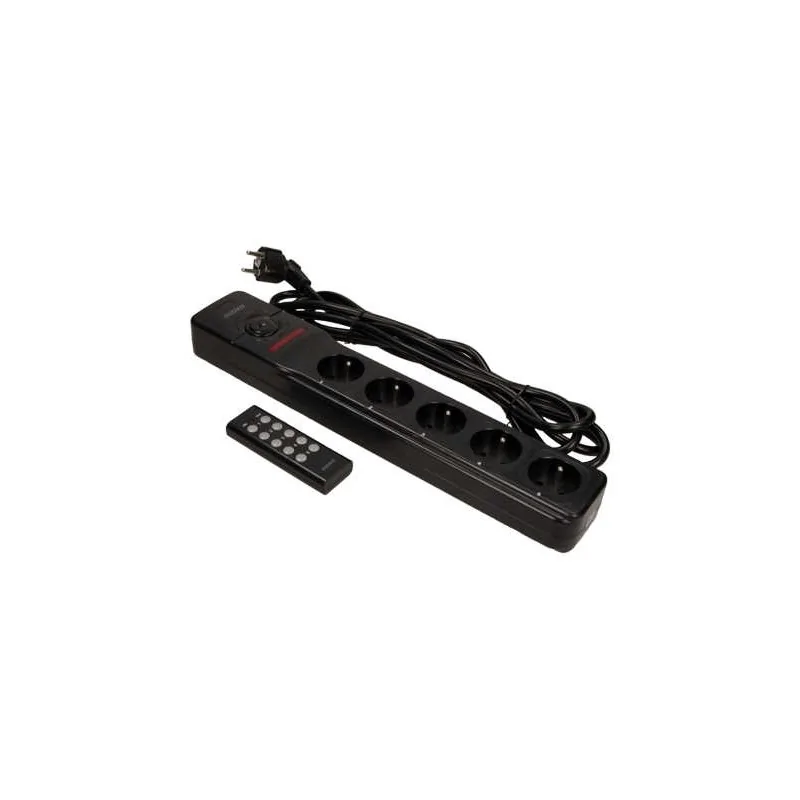 Czarny przedłużacz z uziemieniem sterowany pilotem na 5 gniazd 3m H05VV-F OR-AE-13132 ORNO