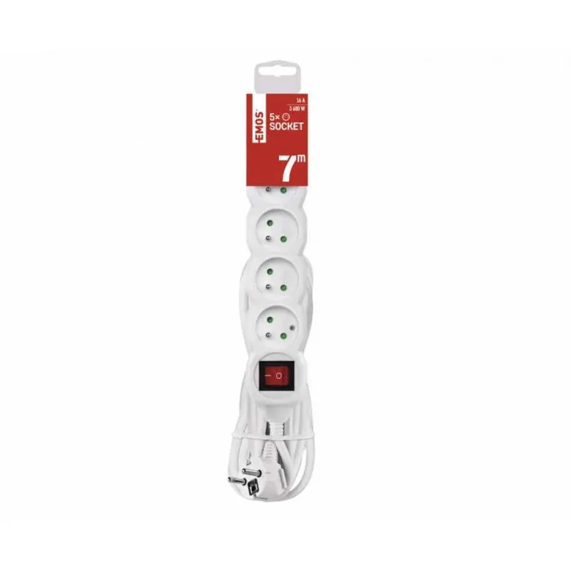 Listwa zasilająca biała 7m 5 gniazd z wyłącznikiem PVC 1,5 mm2 P1517R EMOS