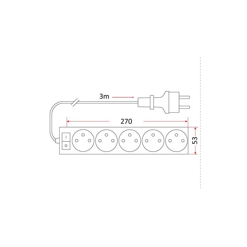 Listwa zasilająca z włącznikiem 3 m- 5 gniazd z/u PM/5-3-3m+W RUM-LUX