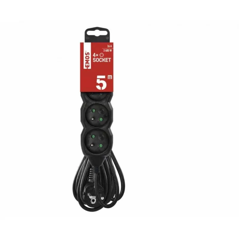 Pięciometrowy przedłużacz domowy na 4 gniazda PVC 1,5mm2 PC0415R EMOS