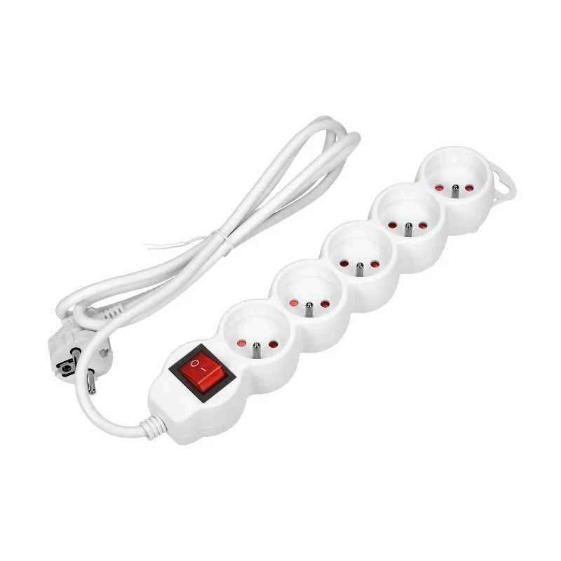 Biały 5-krotny przedłużacz domowy z wyłącznikiem