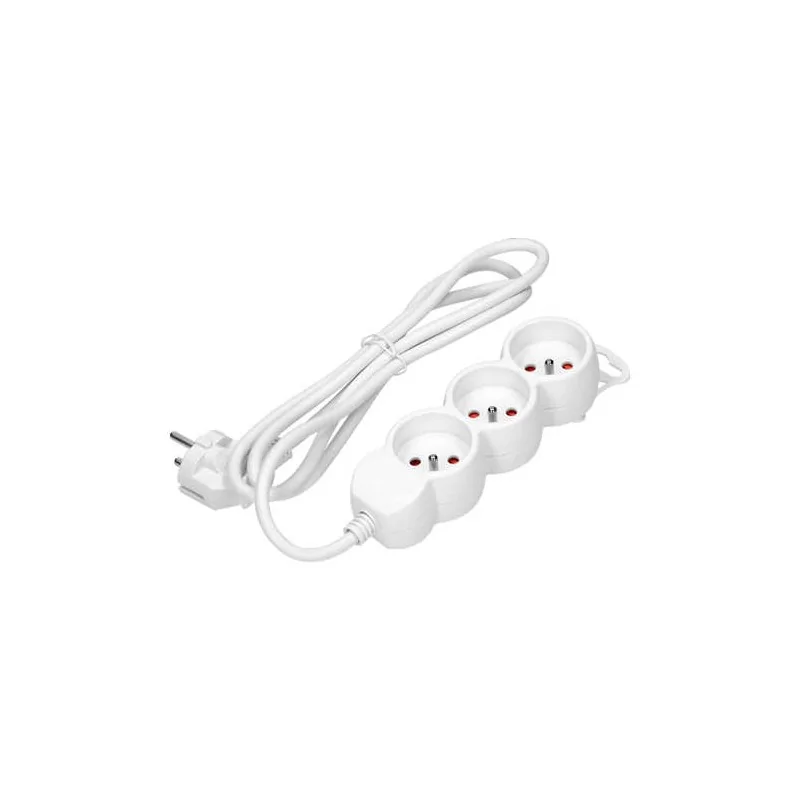 Klasyczny domowy przedłużacz w kolorze białym OR-AE-13145/W/1,5M marki ORNO wyposażony został w 3 gniazda z uziemieniem i przesłonami torów prądowych. Do listwy można podłączyć 3 urządzenia o maksymalnym obciążeniu do 2300W. Długość przewodu przedłużacza wynosi 1,5m. Produkt przeznaczony do zastosowania wewnętrznego- IP20.