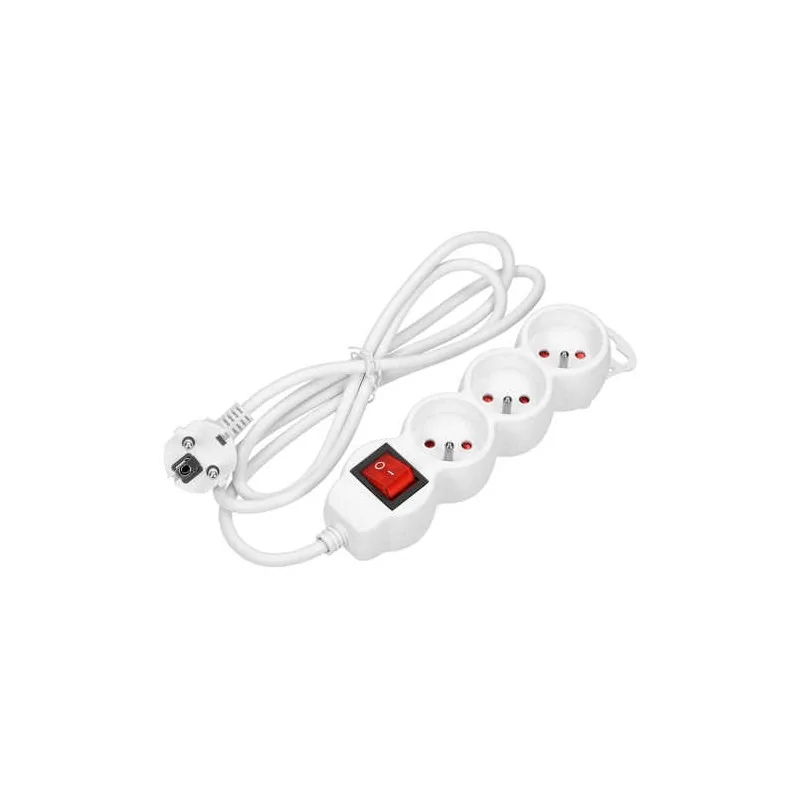 Biały potrójny przedłużacz domowy z wyłącznikiem