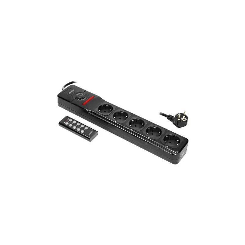 Nowoczesny przedłużacz OR-AE-13132(GS) marki ORNO wyposażony został w pilot do bezprzewodowego sterowania. Czarna listwa zasilająca posiada 5 gniazd z uziemieniem schuko oraz przesłonami torów prądowych, które są ponumerowane. Do przedłużacza można podłączyć 5 urządzeń o maksymalnym obciążeniu do 2300W. Dodatkowo produkt wyposażony został w półautomatyczne zabezpieczenie przeciążeniowe oraz 3-metrowy przewód.