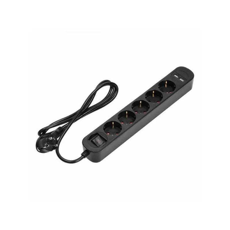 Klasyczny domowy przedłużacz w kolorze czarnym PS-1(GS)/B/1,5M marki ORNO wyposażony został w 5 gniazd z uziemieniem schuko i przesłonami torów prądowych. Dodatkowo produkt wyposażony został w wyłącznik dwutorowy, 2 wejścia USB oraz płaską wtyczkę, co umożliwia zastosowanie go w trudno dostępnym miejscu np. za meblami. Do listwy można podłączyć 5 urządzeń o maksymalnym obciążeniu do 2300W. Długość przewodu przedłużacza wynosi 1,5m. Produkt przeznaczony do zastosowania wewnętrznego- IP20.