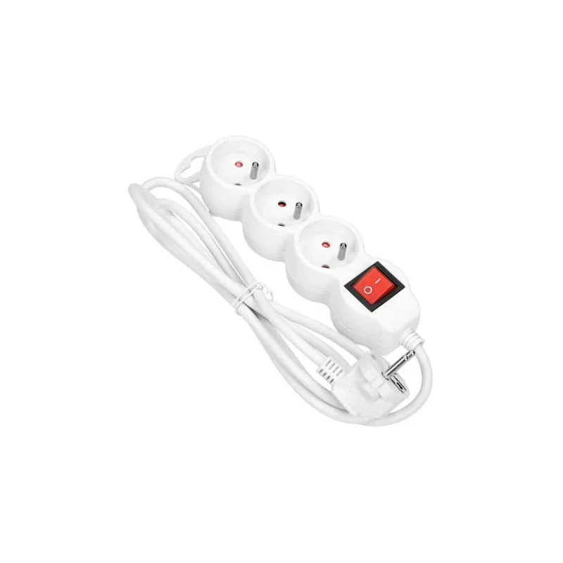 Biały potrójny przedłużacz domowy z wyłącznikiem