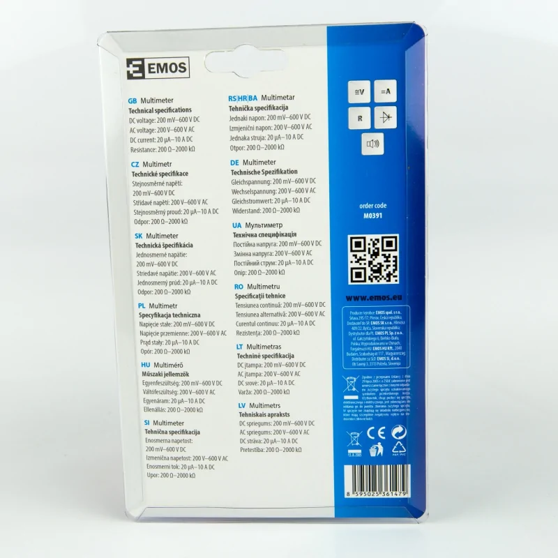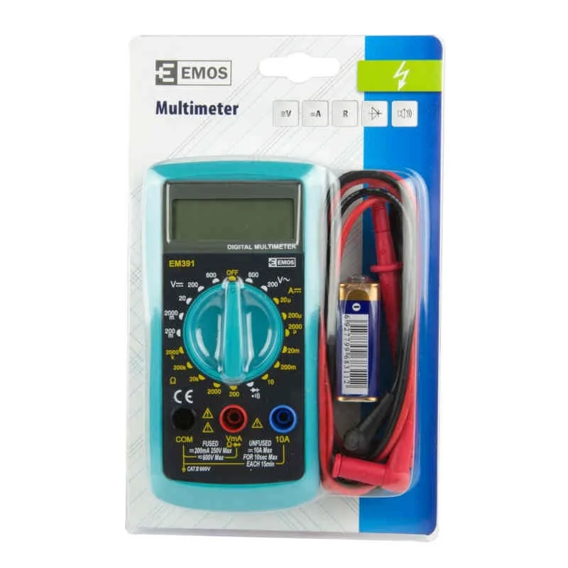 Multimetr marki Emos z ręcznym wyborem zakresu to niezbędnik w każdym gospodarstwie domowym. To niewielkie urządzenie dokonuje pomiaru napięcia stałego oraz przemiennego w zakresie od 200 do 600 oraz prądu do 10A. Pond to multimetr posiada możliwość zrobienia testu diod. Wbudowany wskaźnik wskazuje poziom rozładowującej się baterii. W zestawie z multimetrem znajdują się baterie oraz groty pomiarowe. Doskonała jakość wykonania sprawia, że multimetr to doskonałe urządzenie pomiarowe na lata objęte dwuletnią gwarancją.