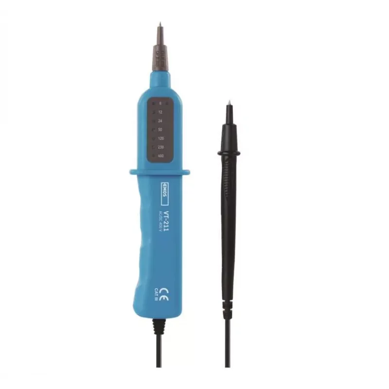 Tester napięcia VT-211 EMOS jest przeznaczony do dwubiegunowego pomiaru wielkości napięcia prądu stałego i przemiennego od 6 V do 400V o częstotliwości 0–60 Hz oraz do ustalania oraz do ustalania polaryzacji napięcia prądu stałego. Tym próbnikiem można wykonywać pomiary w instalacjach elektrycznych i urządzeniach,które odpowiadają kategorii napięć CAT III 400 chodzi np. o domowe instalacje elektryczne, urządzenia ochronne, gniazdka sieciowe, wyłączniki, zabezpieczenia itp. Próbnik wyposażony jest w sygnalizacj optyczną. Produkt objęty gwarancją producenta. Próbnik wskazuje mierzone napięcie tak, że zapalają się w nim diody LED aż do wartości mierzonego napięcia. Detektor M0003B jest bezobsługowy – nie ma żadnej części wymagającej serwisowania.