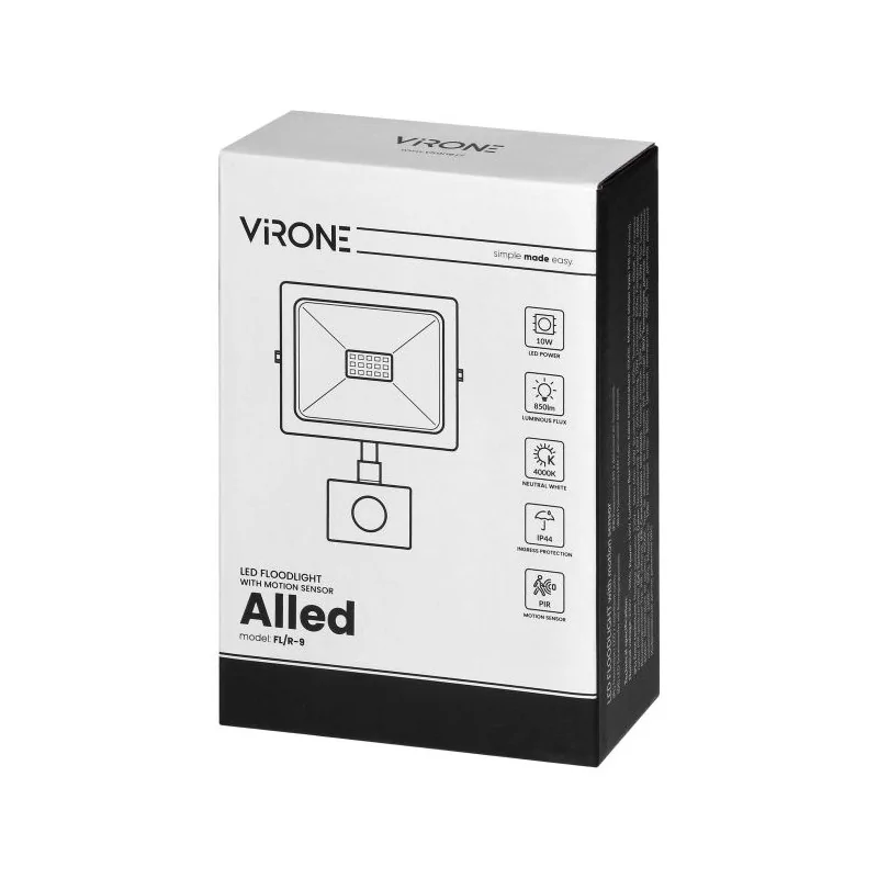 Czarny naświetlacz led z czujnikiem ruchu 10W 4000K IP44 ALLED FL/R-9 ORNO