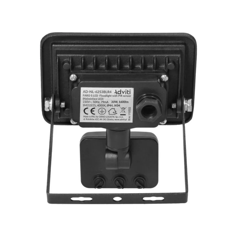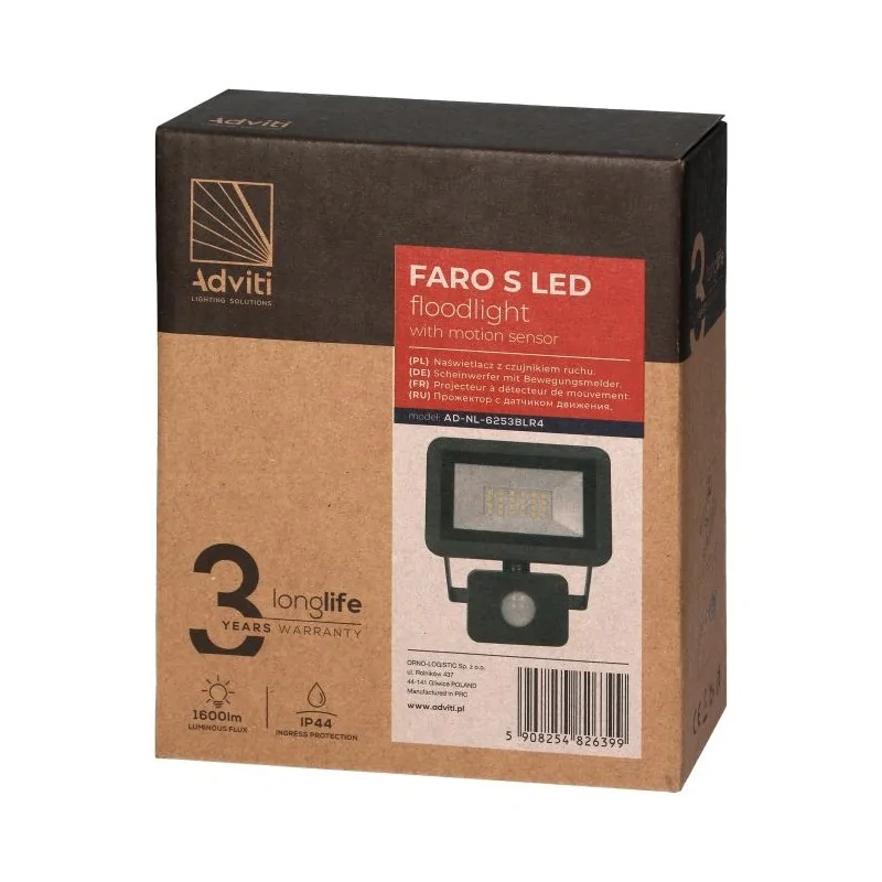 Czarny naświetlacz z czujnikiem PIR LED 20W 1600lm IP44 4000K FARO AD-NL-6253BLR4 ORNO
