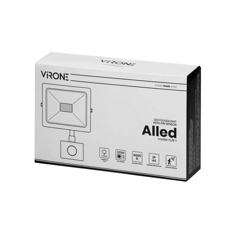 Naświetlacz LED 20W z czujnikiem 1500lm IP44 4000K ALLED PIR FL/R-1 ORNO